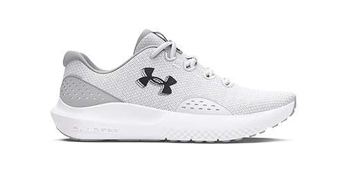 Zapatillas de running Under Armour UA Surge 4 para hombre – Zapatillas para hombre con pisada reactivaEstas zapatillas de hombre aceleran el rendimiento porque combinan comodidad y durabilidad con una sensación de ligereza y velocidad. La parte superior de malla ligera de las zapatillas para correr regula la temperatura para mantener la frescura incluso en los momentos más decisivos. Su amortiguación mejorada alrededor del tobillo garantiza la comodidad y la sujeción necesarias para batir las marcas personales. Además, la mediasuela Charged Cushioning absorbe los impactos, mientras ofrece un impulso hacia delante y un gran retorno de la energía. Por último, la suela exterior de goma robusta ofrece la mejor tracción en diferentes superficies.UNDER ARMOUR HACE MEJORAR A LOS ATLETASEmpezamos con una camiseta que daba una ventaja innegable a los atletas y hemos acabado cambiando completamente la forma en que los atletas se visten. Actualmente, llevamos la innovación en la sangre y seguimos cumpliendo con nuestra visión de marca: inspirarte con soluciones de gran rendimiento que no sabías que necesitabas y sin las cuales no puedes imaginar vivir.Sus ventajas de un vistazo:Ideales para correrMalla superior transpirableAmortiguación mejorada alrededor del tobilloMediasuela Charged Cushioning para ofrecer una pisada reactivaAjuste normalColor: blanco/gris halo/negroMaterial: 71% textil, 29% sintético; suela: 100% goma