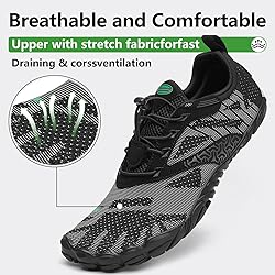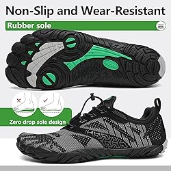 El zapato saguaro descalzo cuenta con una amplia zona de la puntera y un diseño de cinco dedos que proporciona suficiente espacio para los dedos de los pies para evitar una sensación blanda. El material exterior está hecho de material transpirable de alta calidad para mejorar la transpirabilidad de los zapatos y crear un clima agradable en el zapato. La hebilla de liberación rápida permite ponérselo y quitárselo fácilmente. Suela de goma de alta calidad con diseño Zero Drop es antideslizante y al mismo tiempo ofrece un buen agarre para los pies. Cuerpo suave y plegable y plantilla extraíble para una fácil limpieza y reemplazo.
