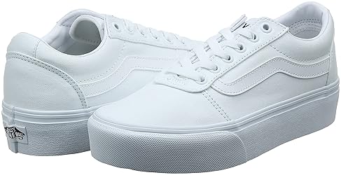 Inspirada en Vans Classic Old Skool, la plataforma Ward es un estilo de cordones de plataforma vulcanizada de corte bajo con rayas laterales exclusivas de Vans, punta redonda, cuello acolchado para mayor comodidad, forro liso y plantilla acolchada.