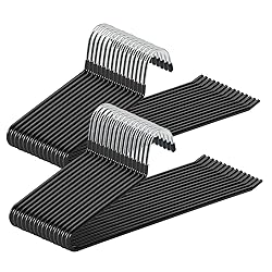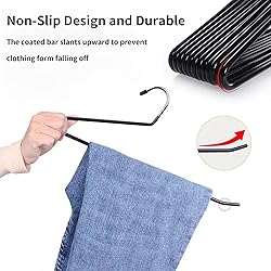 ABHENG Perchas para Pantalones con Lado Abierto, Perchas organizadoras, Paquete de 30, Metal Cromado, 38 x 0,5 x 13 cm, Negro, AIY0530B