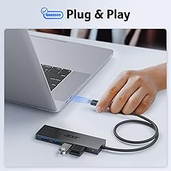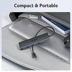 acer Hub USB C 3.0 4 Puertos, Ultra Delgado Hub USB 3.0 Múltipuertos, Expansor de USB C para Laptop con Aimentación, Adaptador USB Portátil, Windows, Linux, Acer PC y más, 1.2m