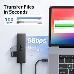 Concentrador USB C de Acer con 4 puertos, Hub USB múltiple 3.0, Divisor USB C para portátil con puerto de alimentación USB C, Extensor USB para portátil con puerto C, compatible con iMac Pro, MacBook Pro, iPad, Windows, Linux, PC Acer y más (4 pies).