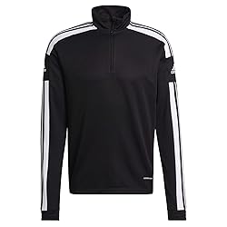fútbol con capucha con un corte clásico. En el tejido blando, con puños de canalé y cremallera 1/4. Inconfundible de la marca Adidas, gracias a las tres rayas en las mangas.