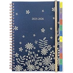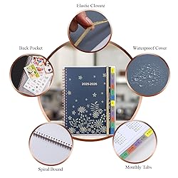 Agenda 2025 2026 Semana Vista Vertical A5, Planificador con Pestañas Mensual, Note, Contacto, Bolsillo Interior, Espiral, Elástico Agenda Diario para Escolar Familiar Trabajo, Ago.25 a Jul.26