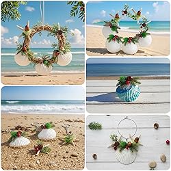 Alegría marina navideña: adornos navideños naturales de conchas y estrellas de mar. Estos colgantes de Navidad únicos están hechos a mano con materiales naturales reales. Cada juego es único y le dará a su árbol de Navidad o hogar un encanto marítimo e individual. El paquete Conchas (9 – 11 cm): 2 piñas de pino, 2 bellotas. Estrellas de mar (8 – 10 cm): 3 piñas de pino, 3 bellotas. Cinta plateada de 1 mm: 10 metros. ¡Encanta tu hogar con la belleza única del mar en Navidad! Estos adornos hechos a mano de conchas reales y estrellas de mar son cada uno por sí mismos un ejemplar único y le dan a tu árbol de Navidad o decoración de fiesta un encanto muy especial y natural. Los materiales naturales procesados de forma sostenible proporcionan un ambiente relajado y reconfortante en la agitada fiesta navideña. Diseñar los colgantes con la familia se convierte en un ritual especial en la época de Adviento y crea recuerdos personales para una fiesta verdaderamente inolvidable.