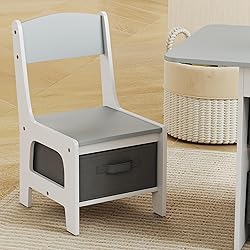 AIYAPLAY Mesa Infantil con 2 Sillas, Mesa y Sillas Infantil con 6 Cajones de Tela, Diseño Estrellas, para Niños y Niñas de 3-8 Años, para Hogar, Guardería, Aulas, Gris Claro