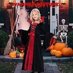 AOLIUP Disfraz de Vampiro Niña: Disfraces Halloween Vampiresa Niñas Vestido de Bruja Para Carnaval Cosplay Fiesta