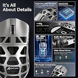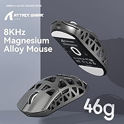 ATTACK SHARK Ratón R3 de Aleación de Magnesio, Inalámbrico 8K, Superligero 46g, Sensor PAW3395, BT/2.4G/Cable, DPI 26000, Para Juegos