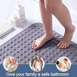 Esta alfombra de ducha está fabricada con materiales ecológicos, es segura y suave para la piel. Mide 80 x 80 cm, es antideslizante y antidesgaste, con un drenaje extragrande, antibacteriana y eficaz contra la humedad. Es una excelente opción para saunas, spas, hoteles, vestuarios y más. Es ideal para personas mayores, niños y personas con problemas de equilibrio, y ofrece una experiencia de masaje relajante durante la ducha.