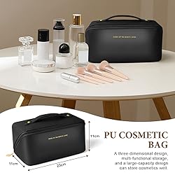 Aucuu Bolsa de Cosméticos de Viaje de Gran Capacidad, Bolsa de Maquillaje de PU de Primera Calidad, Bolsa de Lavado, Multifuncional y Portátil de Viaje con Cremallera y Asa, para Baño