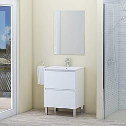 Baikal Conjunto Mueble de Baño con Lavabo, Mueble con Patas, en Varios Acabados, Melamina 16. Sin Espejo. Puerta Cajón Blanco, 60 X 46 X 82, Puro