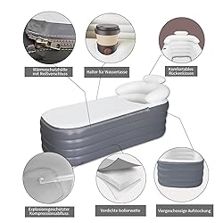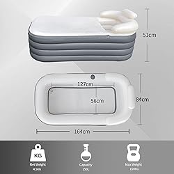 Bañera hinchable para adultos, bañera de hielo portátil grande, spa, bañera de remojo con cubierta de cremallera, diseñada con reposacabezas, soporte para bebidas (bomba de aire en 164 x 84 x 51 cm)