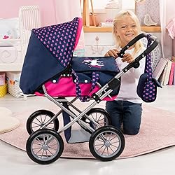 Bayer Design 13654AA City Star en diseño moderno de unicornio, cochecito combi, con capazo extraíble y bolso de hombro, con asa ajustable, para muñecas de hasta 46cm, azul rosa