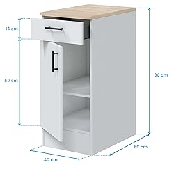 Bricohabitat Módulo Inferior Cocina Estrecho Moderno Kira 1 Puerta 1 Cajón Blanco Brillo y Roble Canadian 40x90x60 cm