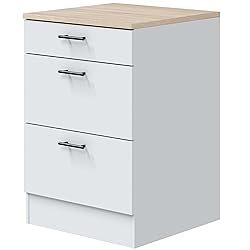 Bricohabitat Módulo Inferior Cocina Kira 3 Cajones Estilo Moderno Blanco Brillo y Roble Canadian 60x90x60 cm