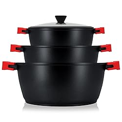 Transforma cada momento en la cocina en una experiencia única con nuestras cazuelas. Ya sea para realizar nuevas recetas o para revivir los sabores de los platos más tradicionales, briebe es tu compañero ideal. Diseñadas para cocinar de manera saludable y eficiente, con ellas, cada plato no solo se cocina, se perfecciona, asegurando resultados excepcionales. Para los apasionados de la gastronomía, briebe es sinónimo de calidad y practicidad.ESPECIFICACIONES:Aluminio FundidoEspesor 5mmAntiadherente QuanTanium multicapa con partículas de Titanio libre de PFOAApta para todo tipo de cocinas: Inducción, Vitrocerámica, Gas, Eléctrica, HornoBase de Inducción completa para reparto homogéneo del calorTapa de vidrio templado con válvula de vapor y cerquillo y pomo de siliconaAsas de silicona termo aislantes extraíblesCOMPOSICIÓN:Olla con tapa de vidrio, Ø 16 x 8 cm (1,2 L)Olla con tapa de vidrio, Ø 20 x 9,2 cm (2,1 L)Olla con tapa de vidrio, Ø 24 x 10,5 cm (4,0 L)