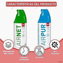 El pack de sprays AirNet & AirPur de CABLEPELADO está diseñado para ofrecer una limpieza integral y purificación del aire en equipos de climatización. AirNet limpia a fondo los conductos y componentes internos, mientras que AirPur neutraliza eficazmente los malos olores, proporcionando un ambiente fresco y saludable. Su fórmula no tóxica, duradera y de fácil aplicación hace que sean ideales tanto para uso doméstico como profesional. Con 750 ml por botella, este dúo te ofrece una solución completa y efectiva para el mantenimiento de tus aires acondicionados.