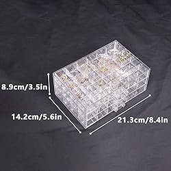 Caja de almacenamiento para pendientes, caja de almacenamiento de joyas de acrílico transparente, soporte para pendientes con 3 cajones, 72 compartimentos pequeños para aretes de anillo