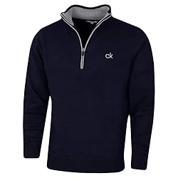 Proporcionando una capa de bienvenida y calentamiento Este chunky 1/2 zip suéter de Calvin Klein Golf está 100% forrado con la innovadora tela técnica de bloques de viento para mantener las brisas bluadas. El algodón 'suave al tacto' / la mezcla de acrílico es cómoda, duradera y fácil de cuidar. Los puños de la costilla y el dobladillo aseguran un ajuste cómodo y conservarán su forma bellamente.