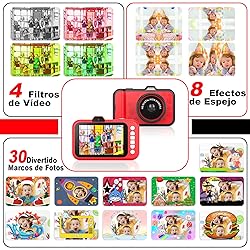 Camara Fotos Infantil ,Camara Fotos Infantil con Flash, 3.5" HD Cámara con Tarjeta SD de 32GB, Papel de Impresión y Lápices de Colores, para Niños y Niñas 3 4 5 6 7 8 9 10 11 12 Años-Zoom 10x, Rotación de 360° Función de la Videocámara para Niños Zoom de rotación manual Vídeo HD de 1080P Soporte para disparador automático Flash incorporado, reproductor MP3 Disparo triple, lapso de tiempo de 3 s/5 s/10 s, zoom de 10 aumentos 4 filtros, 30 cuadros de dibujos animados, 8 efectos especiales, 5 juegos de rompecabezas Hecho de material ABS de alta calidad, resistente al desgaste y a los arañazos Mantén a los niños alejados de sus móviles y ayúdalos a descubrir el mundo Con cordón, fácil de llevar Botones simples, fáciles de usar Incluye tarjeta de memoria de 32G Un fantástico regalo de cumpleaños y Navidad para niños de 3 a 12 años Especificación de la cámara con zoom para niños: Pantalla: pantalla IPS de 3,5 pulgadas Batería: 1200mAh Tiempo de carga: 2-3 horas Tamaño del producto: 117,1*76,8*64,7 Sistema compatible: Windows XP /Vista/ 7/8 Expansión máxima de memoria: 32G Videocámara infantil incluido embalaje: 1 * cámara para niños 1 * cable de carga USB-C Tarjeta de memoria de 1 * 32 GB 3 * pegatinas de dibujos animados 1 * cordón 1 * Manual de usuario