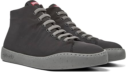 Botines de tejido negro para hombre. Empeine de PET reciclado al 80% con suela exterior de EVA en contraste, plantilla OrthoLite reciclada y cordones elásticos. Peu Touring es una versión deportiva y contemporánea de nuestro icónico Peu, con técnicas y una curva reconocible en la suela.