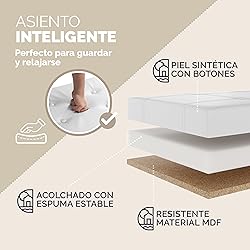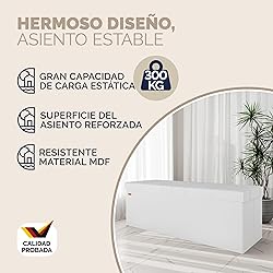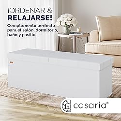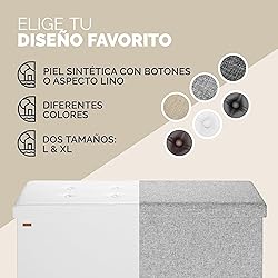 Banco y caja de almacenamiento 2en1: Orden y comodidad en el hogar:El versátil arcón está fabricado con robusto MDF y se destaca por ser multifunción. No sólo le ofrece un lugar de almacenaje, sino que también es un cómodo asiento o taburete.La tapa se puede abrir por ambos lados, por lo que se pueden sacar o meter objetos de forma rápida y práctica. El asiento está bien acolchonado asegurando comodidad al sentarse. Además, gracias al fondo interior se protegen los objetos de la humedad.El baúl de almacenaje viene en L y XL y tienen una capacidad de 100 y 131 L respectivamente, ofreciendo un amplio espacio de almacenamiento, ideal para guardar de manera ordenada y segura juguetes, libros, ropa, zapatos y mucho más.Otra ventaja, es que si ya no se necesita, se puede plegar y ahorrar espacio a la hora de guardarlo o transportarlo. Además, la superficie es muy fácil de limpiar.El cofre de almacenaje tiene un diseño muy atractivo, y gracias a su variedad de colores es muy fácil de combinar con el resto del mobiliario.Ventajas del producto:PlegableMucho espacio de almacenamientoTapa desmontable y se puede abrir por ambos ladosAsiento tapizadoSuperficie de fácil cuidado y repelente al aguaEl suelo del baúl impide el paso de la humedadDatos técnicos:Dimensiones (LxAxA) XL: 115x38x38cm - L: 80x40x40cmDimensiones plegadas (LxAxA): XL 115x38x7cm - L: 80x40x7cmVolúmen: XL: 131L - L:100LCapacidad de carga estática máx.: 300 kgSuperficies del material: 100% poliéster (gris, gris oscuro)Superficies del material: 100% policloruro (blanco, marrón, negro)Material de la superficie interior: 100% poliésterMaterial del marco: MDFColores disponibles: Blanco, Negro, Marrón, Antracita, Gris claro.Incl