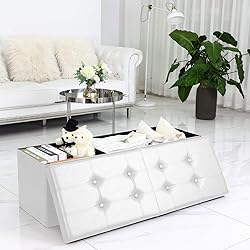 Casaria® Banco Almacenaje Baúl Capacidad 130L Carga hasta 300kg 115x38x38cm Puff Otomana Plegable Tapizado Acolchado Salón Dormitorio Entrada Blanco