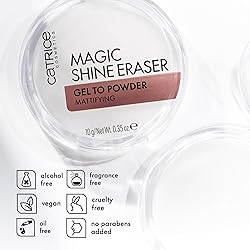 Prepárate para la cámara con el Magic Shine Eraser gel acabado en polvo de Catrice. Su suave fórmula matificante gel acabado en polvo es una experiencia sensorial universal: se funde a la perfección con cada tono de piel, creando un acabado impecable que es optimo para el uso diario y para momentos dignos de selfie. La textura transparente similar al gel se transforma en un polvo ligero que proporciona un efecto filtro y que no altera el maquillaje ni deja un tono blanco. Para un cutis optimamente uniforme. Nos oponemos a los experimentos con animales. Cosnova aparece internacionalmente con essence y CATRICE tanto en PETA Alemania como en PETA.