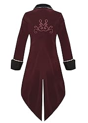 Chaqueta steampunk medieval para hombre, abrigo gótico de frack, abrigo renacentista retro victoriano bordado de patio, disfraz de Halloween pirata de vampiro para hombres (rojo, M)