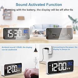 Despertador CHEREEKI - Haz tu vida mejor cada día. Nota: 1. Para un mejor efecto, puede quitar la película protectora cuando se utilice por primera vez. 2. Cómo activar/desactivar la alarma: pulsa el botón "Alarm 1" para activar/desactivar la función 1 y pulsa el botón "Alarm 2" para activar/desactivar la función de alarma 2. (Nota: cada función de alarma se puede activar/desactivar por separado. 3. Mantenga el reloj lejos de fuentes de calor. El reloj no se puede utilizar en entornos de alta temperatura o alta humedad. 4. Si el reloj muestra un código desordenado o una pantalla incorrecta, use un pin y presione el botón "RESET". El reloj vuelve al estado de funcionamiento normal. 5. Apague el interruptor de encendido si no lo usa durante mucho tiempo. Contenido del paquete: 1 x Reloj despertador digital LED Chereeki 1 x cable USB (sin adaptador). 1 x Manual del usuario