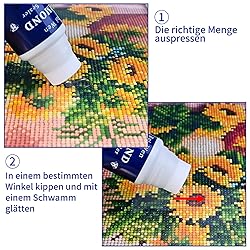 Función del producto: mantiene todas las piedras pequeñas en su lugar de forma segura. Hace que tus cuadros de diamantes brillen durante mucho tiempo. Evita que las pinturas de diamante se peguen al polvo y la suciedad. Mantiene tus pinturas de diamante coloridas con fórmula resistente a los rayos UV. Fácil de aplicar y de secado rápido. Instrucciones de uso: agitar vigorosamente la botella antes de usar, quitar el tapón y presionar la esponja sobre la superficie de la pintura de diamante. Aplica el adhesivo sobre la pintura de diamante y déjalo secar durante al menos 30 minutos (dependiendo del grosor y la temperatura de la aplicación). El líquido adicional garantiza una distribución óptima. El sellador blanco lechoso se vuelve completamente transparente después del secado. Después de unas horas, el sellador se ha secado y su brillante obra maestra estará protegida de forma segura. ¡Precaución! Cierre la tapa inmediatamente después de su uso. Almacenar en un lugar fresco y seco. Mantenga este producto fuera del alcance de los niños. Evite el contacto directo con la piel y los ojos. Si accidentalmente se mete el pegamento en los ojos, enjuague inmediatamente con abundante agua e inmediatamente consulte a un médico.