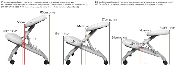 Silla ergonómica ideal para aquellos que trabajan sentados, ayuda a mantener la posición correcta de la columna vertebral, la inclinación entre el asiento y la rodilla es ajustable. De madera de caucho (árbol de goma) y relleno indeformable.