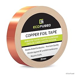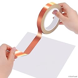 Eco-Fused Cinta de cobre de alta calidad. Este paquete contiene 1 rollo de cinta de cobre premium de 2,5 cm de ancho y una longitud total de 20 m. A diferencia de otras cintas de lámina de cobre, ambos lados de la cinta de cobre Eco-Fused Premium son conductores. Esto permite que cualquier componente eléctrico que conecte a la parte superior o inferior de la cinta funcione perfectamente en el circuito. La cinta autoadhesiva de lámina de cobre de alta calidad es perfecta para blindaje EMI/RF, circuitos de papel, reparaciones eléctricas y puesta a tierra. También es ideal para artes y manualidades, como fabricación de ventanas de vidrieras, álbumes de recortes y decoración de interiores. Para obtener los mejores resultados, recomendamos utilizar la cinta de cobre premium en superficies limpias y planas. Contenido del envío: - 1 cinta adhesiva de cobre premium