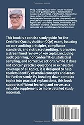 This book provides a concise yet comprehensive guide to preparing for the Certified Quality Auditor (CQA) exam by focusing on the core principles of auditing, compliance standards, and quality management. It is designed to serve as a streamlined resource that supplements more detailed study materials. Covering topics such as audit planning, risk-based auditing, corrective actions, and compliance verification, this book helps readers understand essential auditing concepts without unnecessary complexity. Key subjects include identifying nonconformities, evaluating process effectiveness, statistical sampling, and reporting audit findings. This book does not contain practice questions and is not intended to be an exhaustive reference on every exam topic. Instead, it highlights key areas of focus that will help candidates refine their study efforts, improve their understanding of quality auditing, and recognize where further learning may be needed. By using real-world examples and practical insights, this guide makes complex audit principles more accessible and easy to understand. Whether you are new to auditing or looking to enhance your skills before the exam, this book will help you grasp critical concepts efficiently. With an emphasis on practical application rather than rote memorization, this book serves as a valuable companion to your exam preparation, ensuring that you develop a strong foundation in quality auditing and compliance verification.