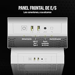 El CORSAIR 3000D AIRFLOW WHITE presenta un chasis ATX semitorre con un eficiente diseño de gran caudal de aire y un excepcional potencial de refrigeración. El panel frontal de acero y los dos ventiladores CORSAIR SP120 ELITE preinstalados garantizan un flujo de aire óptimo por todo el chasis, mientras que el panel lateral de vidrio templado ofrece una vista excelente de sus componentes internos. Su diseño interior inteligente y optimizado puede albergar hasta ocho ventiladores para chasis de 120 mm o cuatro de 140 mm. Gracias a su espacio para radiadores de hasta 360 mm, soporte para unidades de almacenamiento de 3,5" y 2,5" y una tarjeta gráfica de cuatro ranuras de hasta 360 mm de longitud, puede crear un sistema potente de gama alta. El panel frontal de E/S incluye dos puertos USB 3.2 Type A y un conector de audio/micrófono para mayor comodidad.