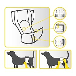 FUNCIONAL: Los pañales Croci Dog Nappy son óptimoes en caso de incontinencia postoperatoria y dificultades motoras; te hacen la vida más fácil a ti y a tu perro y también son perfectas para viajes largos. NO ANTICONCEPTIVO: El pañal no brinda protección anticonceptiva. INDICADOR HÚMEDO: El innovador indicador húmedo le permite tener un control constante sobre la higiene de su perro; cuando el indicador cambie de color, sabrás que es hora de cambiar el pañal. EXCELENTE AJUSTE: El amplio cierre elástico y adhesivo le permite aplicar los pañales con total practicidad, optimizando la comodidad de su perro y al mismo tiempo un sello sólido que resiste incluso los movimientos de los perros más vivaces; talla XL.
