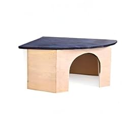 Croci Wood Corner House Blue Rood Casa de Madera para Hámsteres, Mascotas Pequeñas, Cobayas, Forma de Esquina, Techo Azul, 29 x 13 x 21 cm