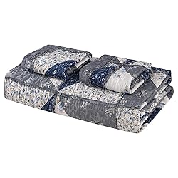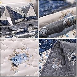 DECMAY Colcha Cama 150 Colchas Patchwork Gris 220x240 cm, Colcha con Diseño de Flores, Edredón con Volantes, Manta Multiusos para Sofá, Incluye 2 Fundas de Almohada 48x75 cm