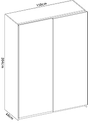 Armario de dos puertas correderas con división interior. Consta de una barra y un estante a cada lado.
