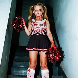Disfraz Animadora Zombie Niña, Disfraz Zombie Niña Mujer Sangre Uniforme con Pompones Calcetines Ensangrentados Halloween Cosplay