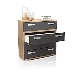 Medida de la cómoda: 89 cm (Largo) x 89,6 cm (Alto) x 39,6 cm de (Fondo). Combinable con el resto de colección de dormitorio Ataneq. La cómoda es óptimo para cualquier dormitorio tanto juvenil como doble, compuesta de 4 cajones para poder guardar todo tipo de ropa y accesorios. Apto para cualquier estilo y decoración. En la parte frontal, encontramos 8 tiradores, 2 por cajón, situados en los laterales de cada cajón con medidas de 16 cm de ancho color aluminio. Estructura resistente hecha a base de aglomerado de alta resistencia, acabada en melamina de alta calidad con un perímetro roble claro y cajones gris grafito. Este tipo de material tiene una superficie no porosa y muy resistente; por lo tanto, es un mueble fácil y rápido de limpiar con un paño húmedo; requiere montaje (incluye instrucciones y herrajes); no incluye los objetos de decoración y accesorios (cestas no incluidas).