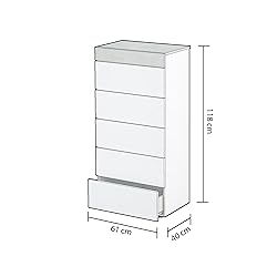 duehome | Cómoda, Sinfonier 5 Cajones, Modelo Axel, Acabado en Blanco Artik y Gris Cemento, Medidas: 61 cm (Ancho) x 118 cm (Alto) x 40 cm de (Fondo)
