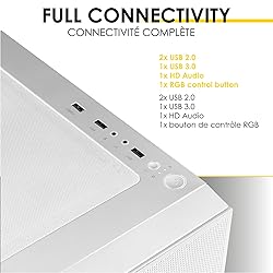 EMPIRE GAMING – Caja PC Gamer Sapphire - ARGB Mid-Tower ATX/Micro ATX/ITX - Puerta Lateral de Vidrio Templado - 3 Ventiladores 3 Pines 5 Voltios LED RGB Direccionable 120MM - MB Sync - Blanco