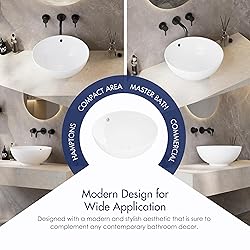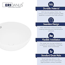 Eridanus Lavabo de baño blanco brillante con desbordamiento, lavabo redondo de porcelana vítrea para encimeras, lavabo redondo de cerámica, ideal para armarios de tocador, 430 x 430 x 180 mm