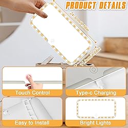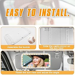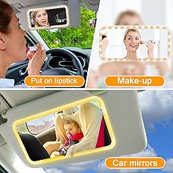 Espejo cosmético para coche, con 3 modos de luz, visor de coche, espejo cosmético, protector solar portátil - Con su luz LED de color regulable, puede personalizarla según sus necesidades. -Espejo de alta resolución: el espejo de maquillaje tiene 30 luces LED incorporadas que son lo suficientemente brillantes como para brindarle un estado visual claro y ya no se preocupe por las molestias causadas por la luz oscura. - Fácil instalación: el espejo de maquillaje para coche es fácil de instalar. Simplemente abra el clip y fíjelo a la visera, sin daños, no se necesitan otras herramientas. Especificaciones: Nombre del producto: espejo cosmético para Material: ABS + cristal. Espejo: HD espejo Color: blanco. Dimensiones: 25,5 x 12,8 x 2,5 cm. Lista de embalaje: 1 espejo cosmético para coche.