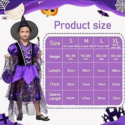 Que tus hijos tengan un Halloween muy feliz. Este disfraz de bruja para niña está elaborado con un púrpura noble y misterioso para crear el misterio y la nobleza característicos de las brujas. Es ideal para fiestas infantiles. Para los amantes del cosplay, nuestros disfraces de bruja para niña también son una gran opción; estos elegantes disfraces de Halloween infantiles te harán lucir adorable. Este disfraz de Halloween para niña es perfecto para Halloween, Carnaval, fiestas de disfraces, Navidad, Pascua, Nochevieja, y también es adecuado para cosplay, espectáculos, etc. Confía en nosotros, la belleza empieza desde aquí, porque nuestro disfraz de Halloween para niña te dará mucha confianza en ti misma. Si buscas lo que buscas, nuestros disfraces de bruja para niños te darán la respuesta. Tabla de tallas: #S: Altura: 100-110 cm, Largo: 82 cm, Pecho: 70 cm, Largo de manga: 44 cm; #M: Altura: 110-120 cm, Largo: 88 cm, Pecho: 74 cm, Largo de manga: 47 cm; #L: Altura: 120-130 cm, Largo: 94 cm, Pecho: 78 cm, Largo de manga: 50 cm; #XL: Altura: 130-140 cm, Largo: 100 cm, Pecho: 82 cm, Largo de manga: 53 cm. El paquete incluye: 1 disfraz de bruja Niñas 1*Sombrero 1*Bolso 1*Varita mágica Nota: 1. Lavar a mano con cuidado. Colgar para secar, evitar la exposición a la luz solar. 2. Puede haber una diferencia de 1-2 cm debido a la medición manual. 3. El color de la foto puede variar ligeramente del producto real debido a la visualización del color en los diferentes monitores. Precauciones de lavado: No usar lejía, suavizante ni plancha, ya que esto puede afectar la calidad. No lavar prendas de diferentes colores para evitar la decoloración.