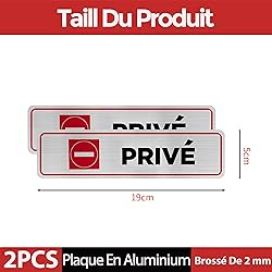 PLACA DE PUERTA PRIVADA Ref. Q0157 ¿Por qué fijar una placa privada? Indique a todos un área privada donde está prohibido entrar con la placa de la puerta privada. Esta placa privada tiene doble información con su pictograma PRIVA. Es por eso que fijar una placa privada es esencial para evitar a los visitantes. Instalación interior o exterior de la placa privada. Placa de puerta privada con palabra "PRIVE" en letras negras y pictograma PRIVADO. Su placa privada tiene 170 x 50 mm de formato. 2 materiales propuestos en placa de puerta privada: Placa privada con adhesivo de aluminio cepillado, placa de puerta privada de aluminio cepillado de 3 mm (doble cara en la parte posterior) La placa privada interior está garantizada 10 años. Adhesivo flexible efecto aluminio cepillado o placa de aluminio cepillado de 2 mm de diámetro.