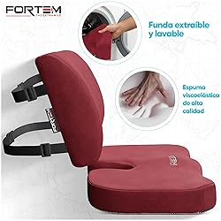 FORTEM Cojín para Silla de Oficina, Almohada de Espuma Viscoelástica con Funda Lavable XL (Rojo)