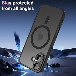 Funda Magnética para iPhone 16 6,1 Pulgadas, con 3 Piezas Vidrio Templado Protector de Pantalla y Marco de Instalación Fácil, Compatible MagSafe, Carcasa Respaldo Translúcida Mate - Negro