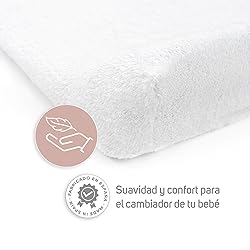 Ti-Tin Bebé 100% Microfibra Suave y Absorbente Cambiando Estera Cubrir funda de felpa muy suave para el cambiador. Fácil de limpiar y se adapta al cambiador. Gracias a sus tejidos elásticos y ajustables se adapta perfectamente a la espuma del cambiador. Se puede lavar a máquina (con una temperatura recomendada de 40 grados) y usar en una secadora. Viene en color blanco.